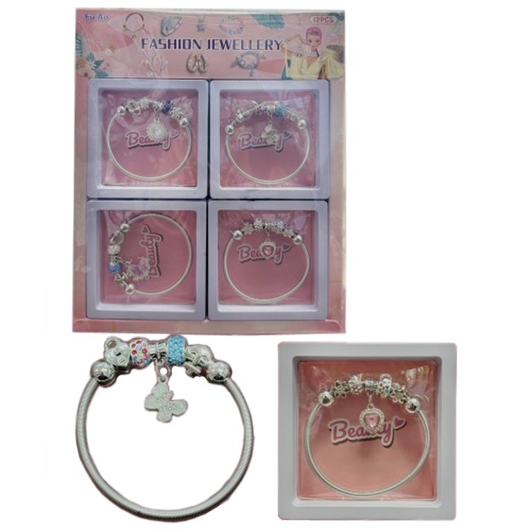 Браслет на руку с подвеской, бусины в коробке, в ассорт., 12 шт. в дисп. 9х9х2 18893