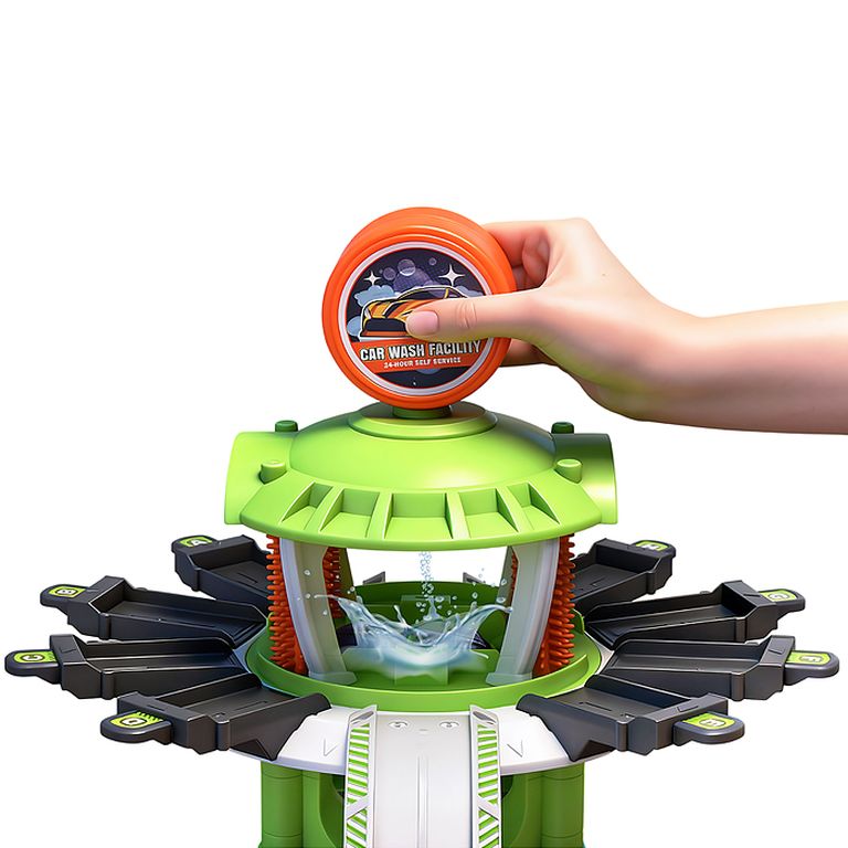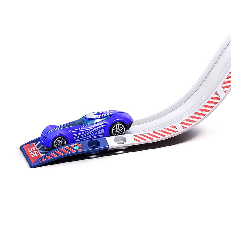 Пластиковые детали дороги легко соединяются между собой, образуя сложную трассу для гонок, в конце пути которой машинку ждет "горящее" кольцо. Конструкцию можно дополнять элементами из других наборов ХВ.