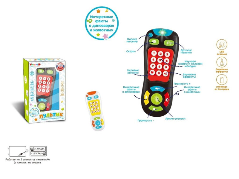 • Работает от 2-х батареек 1.5V "АА" (не входят в комплект)