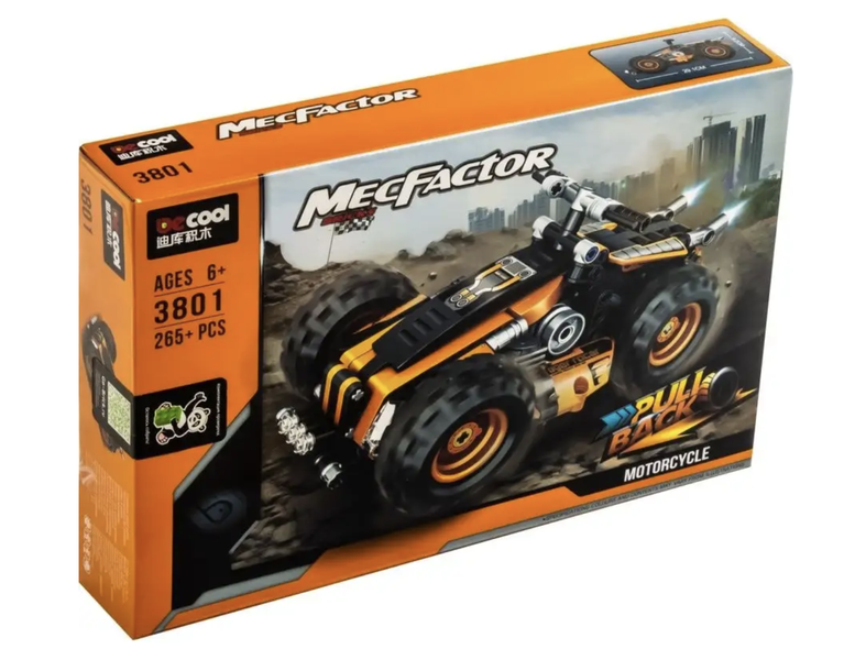 Конструктор Квадроцикл от фабрики Декул — высококачественный набор серии Техник, полностью совместимый с Lego. Черно-оранжевый внедорожник оснащен мощным двигателем и полным приводом, а его огромные колеса с грязевыми протекторами преодолевают любые препятствия. Вездеход оборудован инерционным двигателем Pull Back — откати и отпусти, что позволяет создавать множество игровых сценариев. А если объединить данную модель с конструктором Decool 3802 Полицейский мотоцикл, то можно собрать футуристический трехосный полицейский броневик. Серия конструкторов Lеgo Technic является самой известной в данной тематике. Эта концепция была введена в 1977 году, а название Technic получила в 1982 году. Серия конструкторов Лeго Техник найдет подходящий комплект для любых возрастов и интересов, благодаря богатому ассортименту. С данной линейки были введены всем знакомые соединения, в виде балок и стержней, так как ранее Lеgo состоял лишь из блоков и фигур. Такие механики стали возможны благодаря непрерывному развитию новых элементов. Нововведение конструкторов Техник коренным способом изменило развитие дальнейшего хода индустрии, теперь представить Лeго без подобных деталей достаточно сложно.