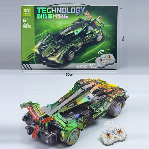 Конструктор Зеленая машина на РУ, LEIBAO Technic Super Car 1-18, 402 дет, в кор 30х20х6см 8322