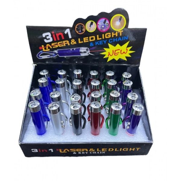 Брелок лазер 3в1, цвета в ассортименте, 24шт в дисплее 806