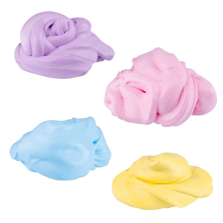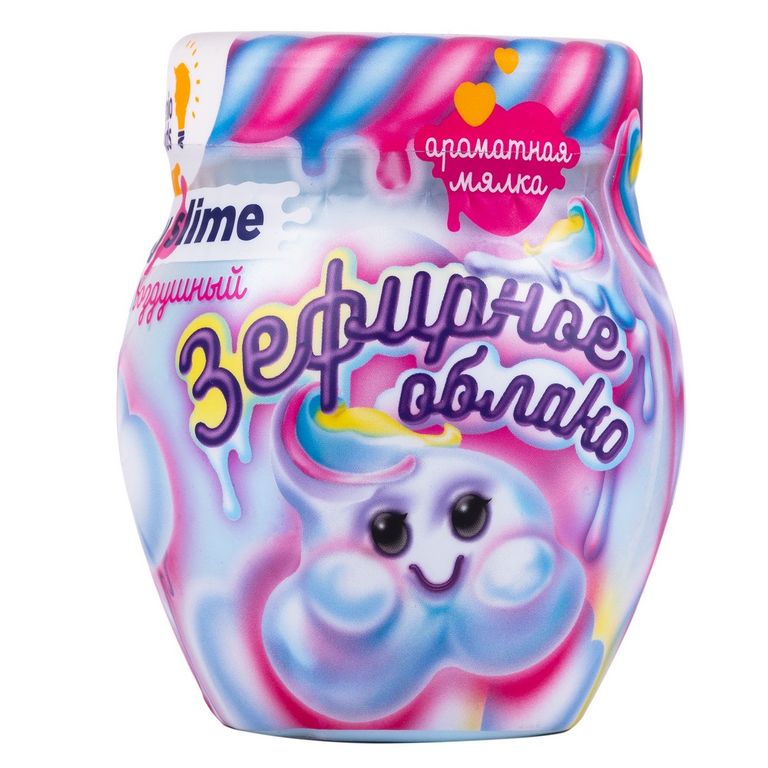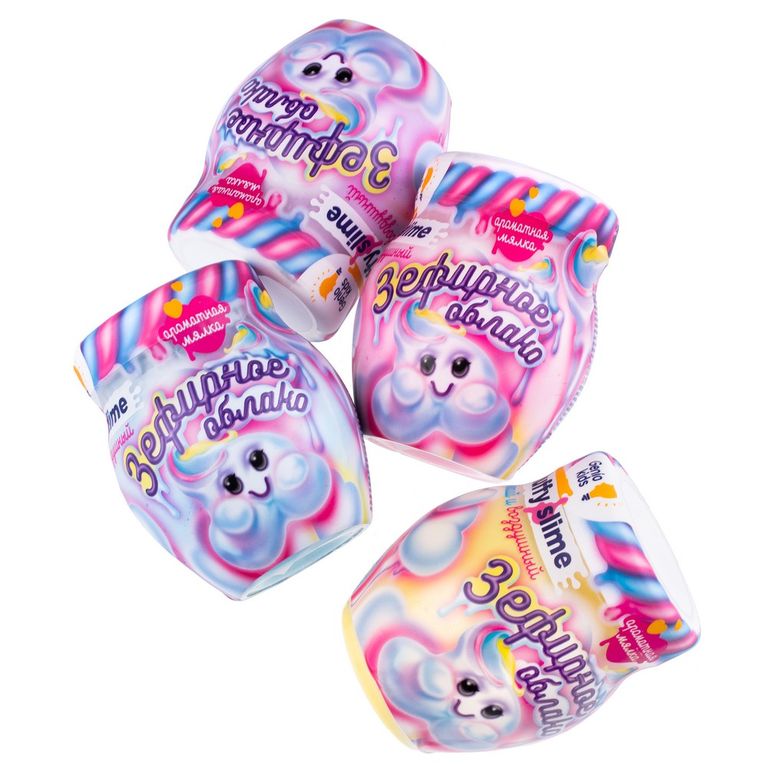 Зефирный, воздужный, нежный Лизун. Преимущества: 1. Новая нежная текстура. 2. "Вкусный" аромат (мороженого или банана). 3. "Зефирные" цвета (в ассортименте): розовый, голубой. желтый, фиолетовый. Номинальная масса: 180 г.
