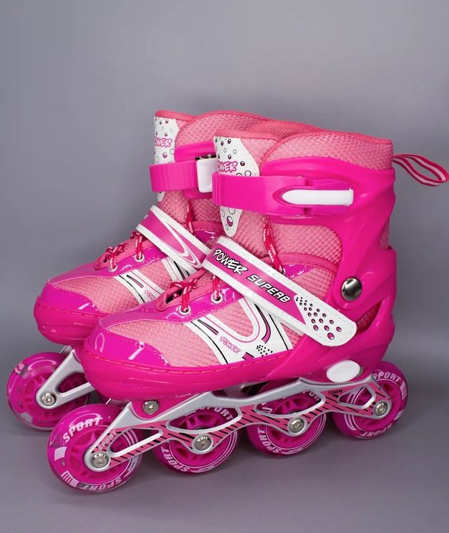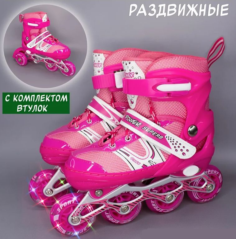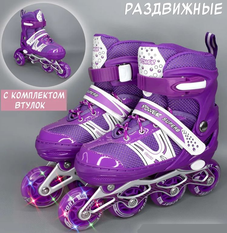 Набор ролики раздвижные, шлем, защита, втулки, светится, размер XS (28-31) сумка 8801-1XS-фиолетовый