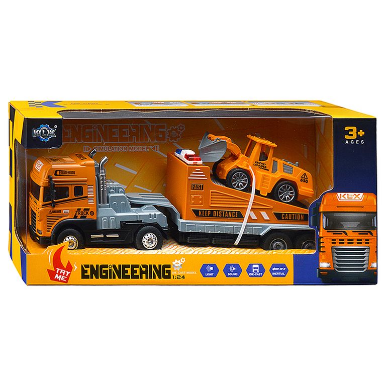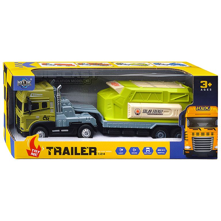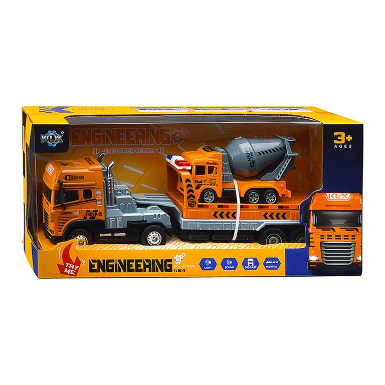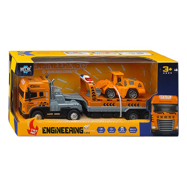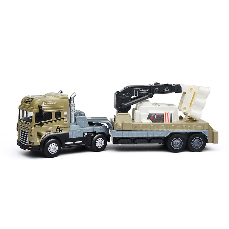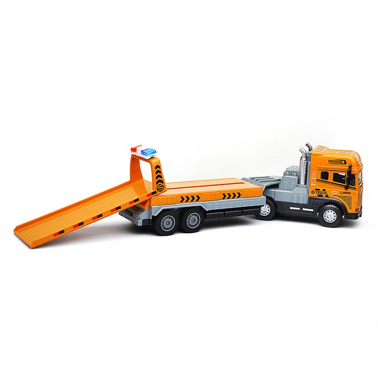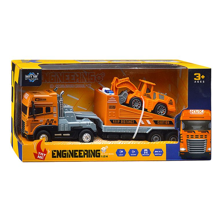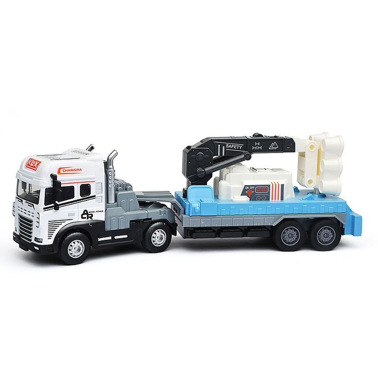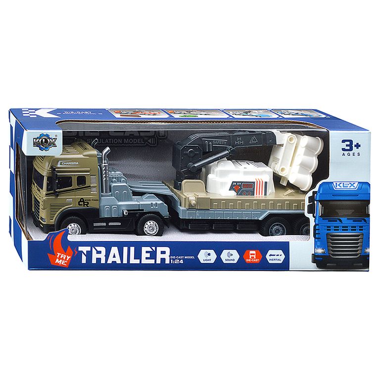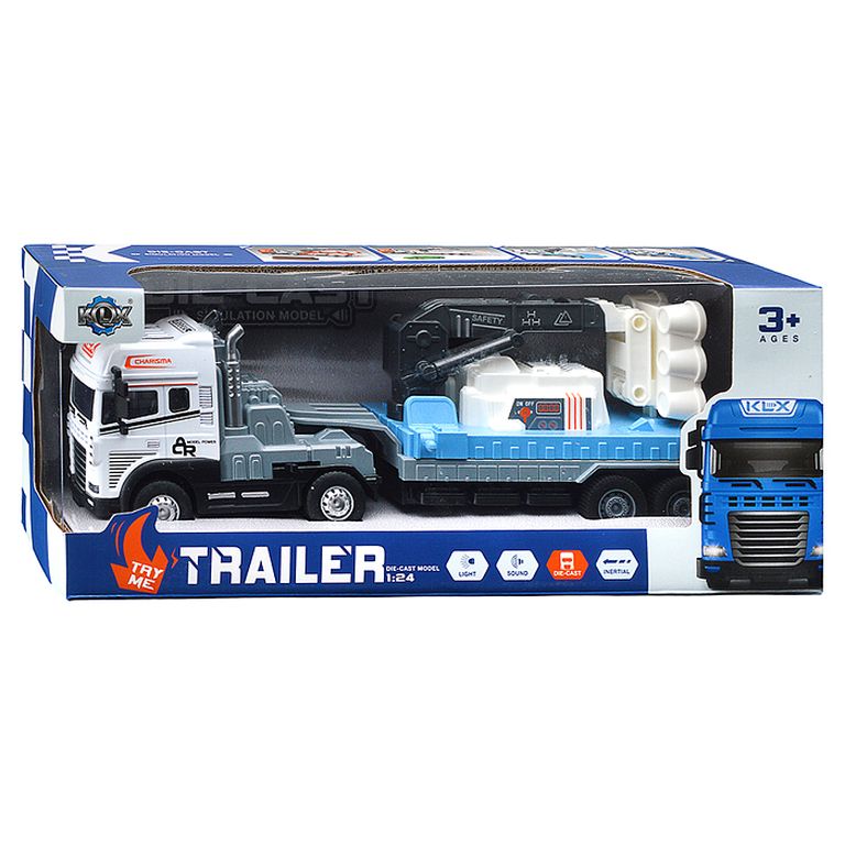 Машина Тягач с прицепом и прожекторами на манипуляторе, свет, звук, в коробке 10х33х13 см KLX800-277