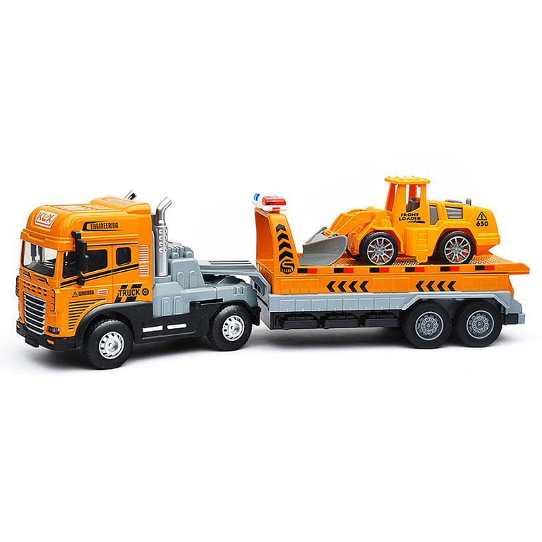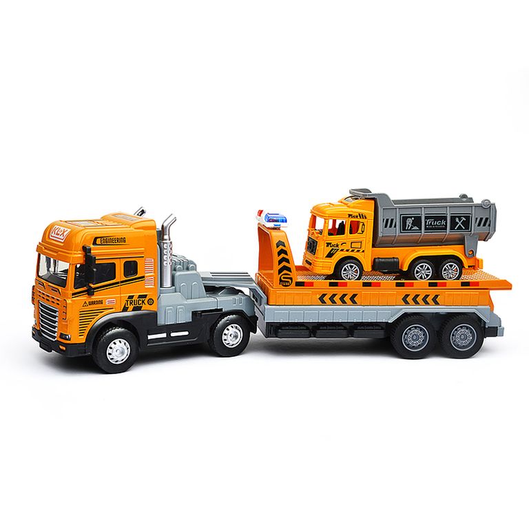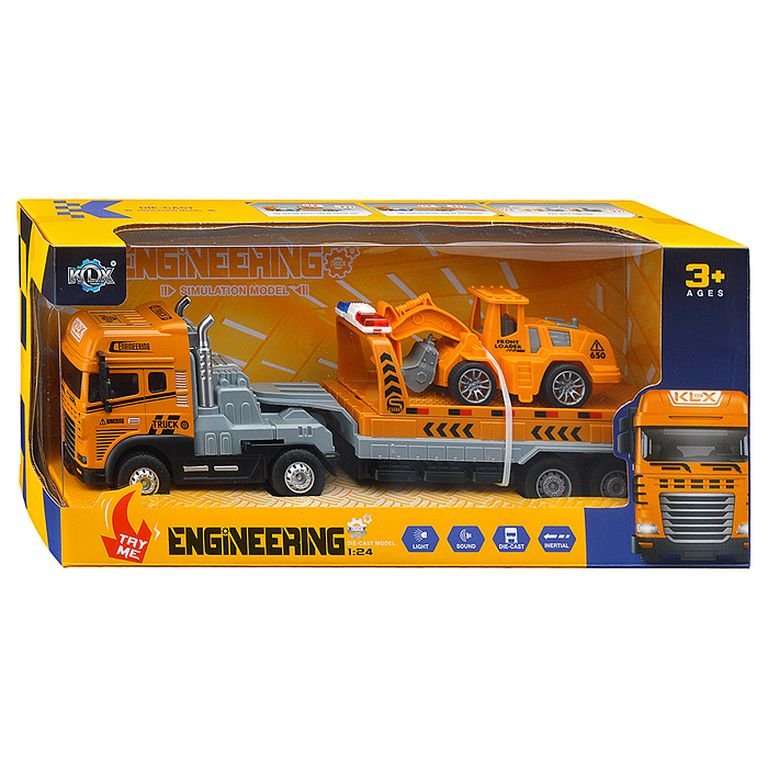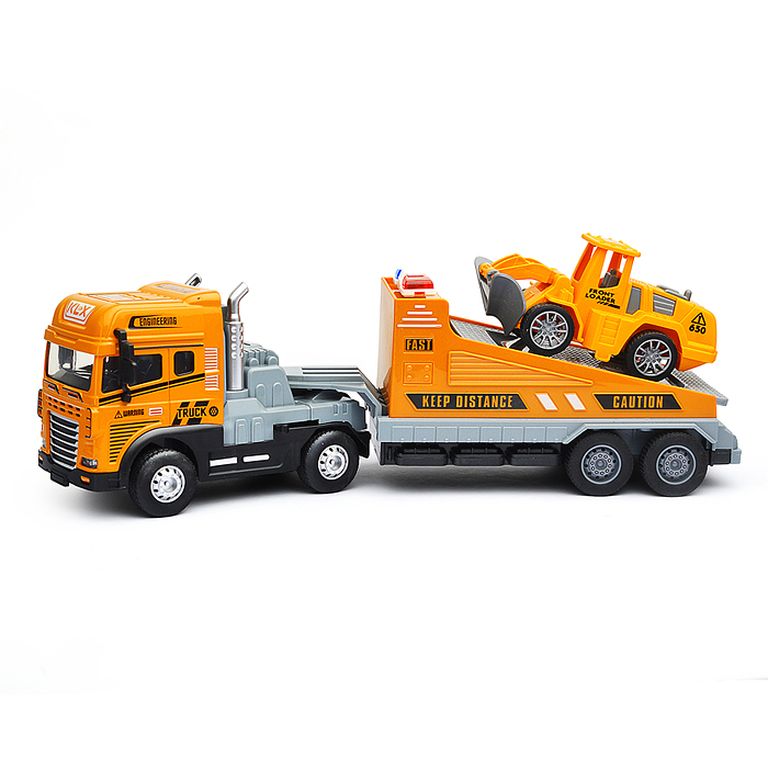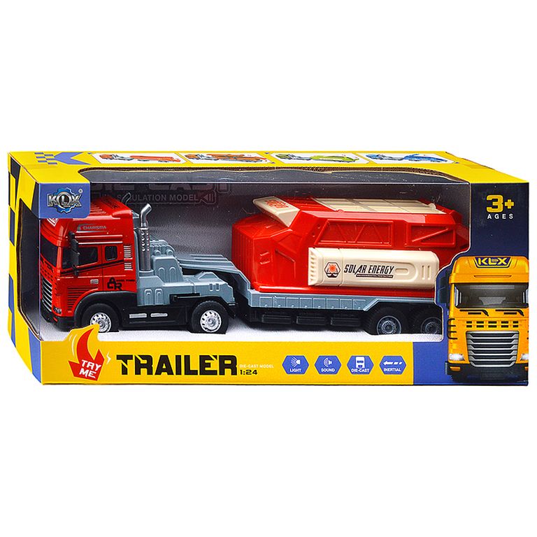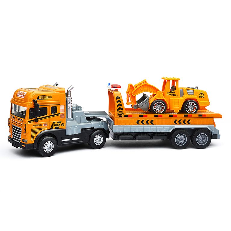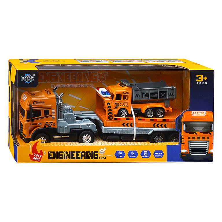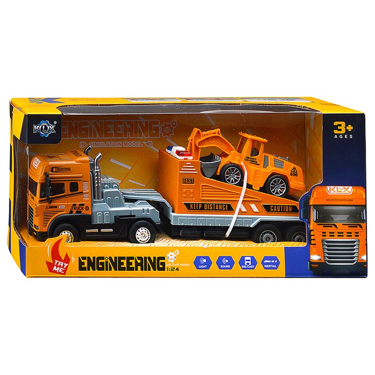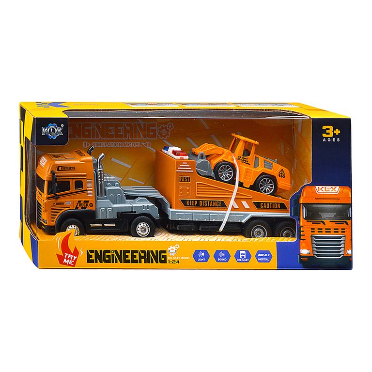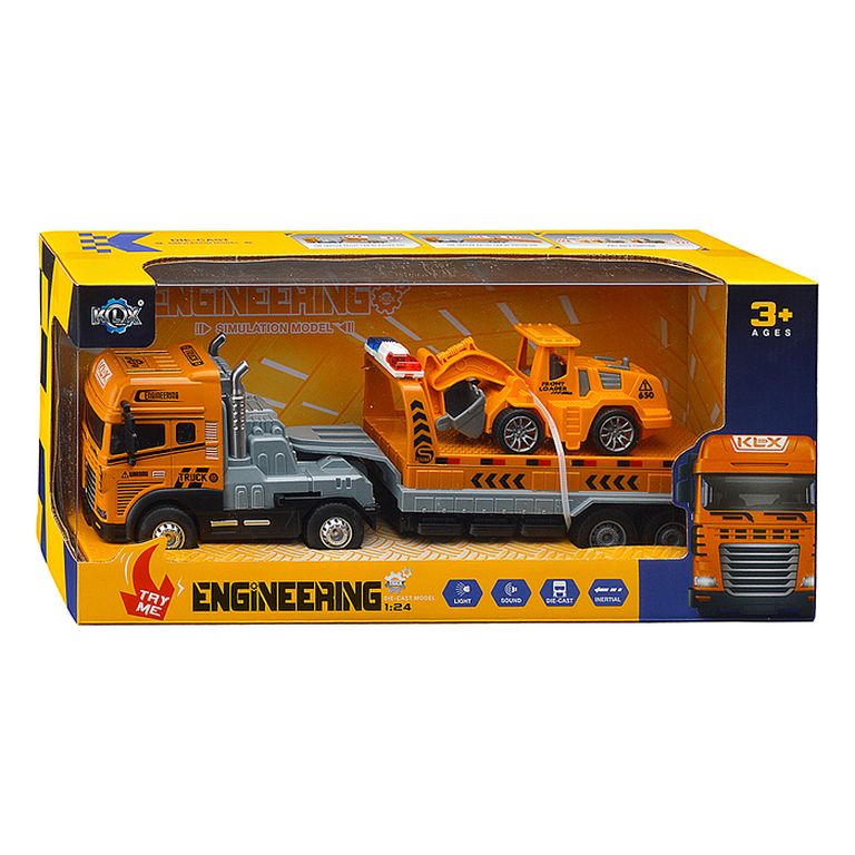Машина Тягач с прицепом и прожекторами на манипуляторе, свет, звук, в коробке 10х33х13 см KLX800-277