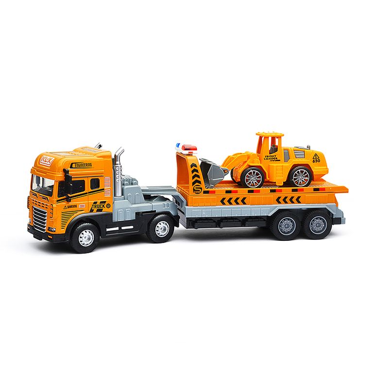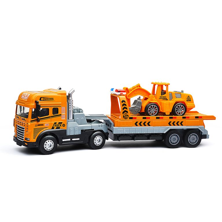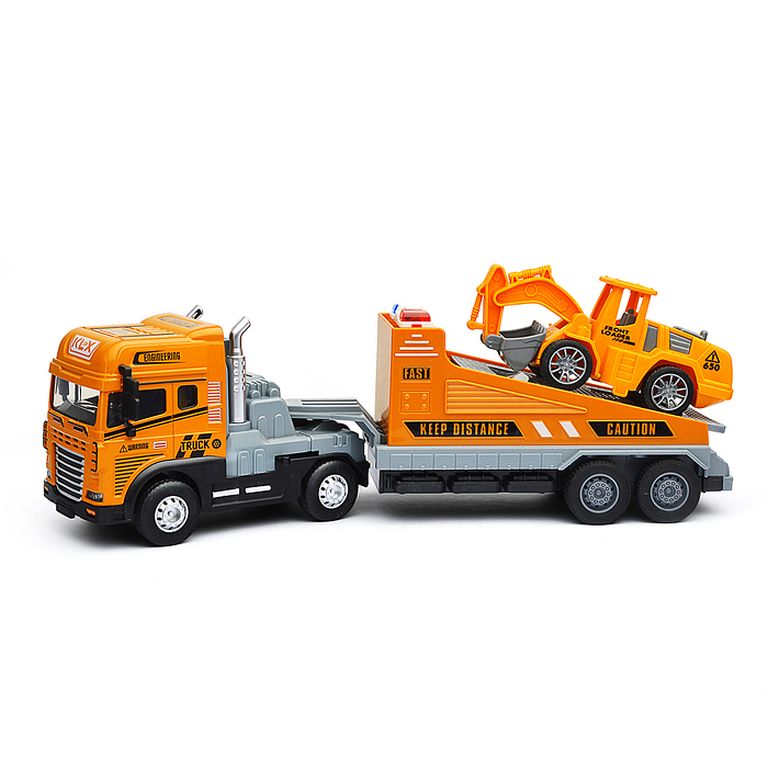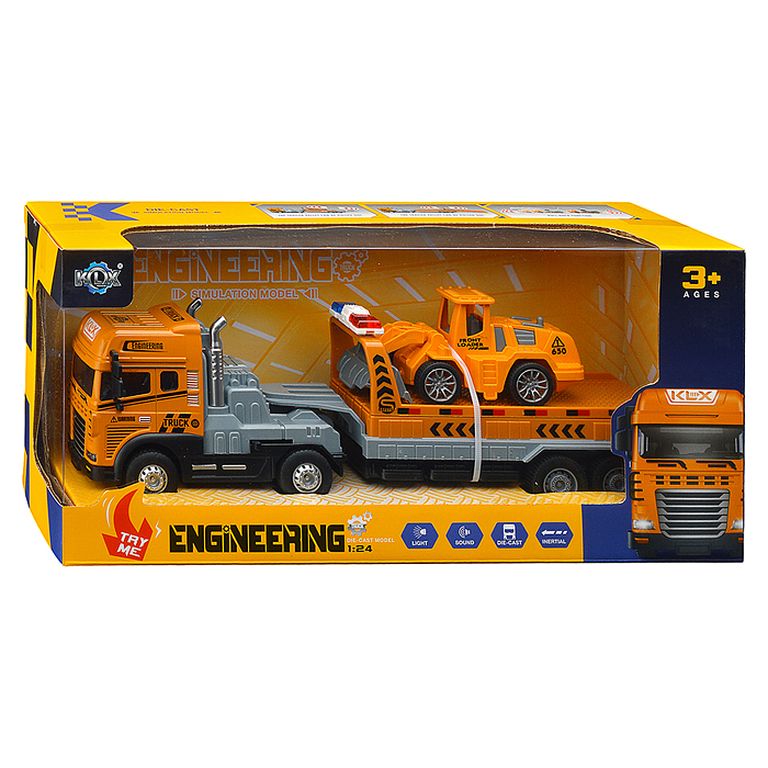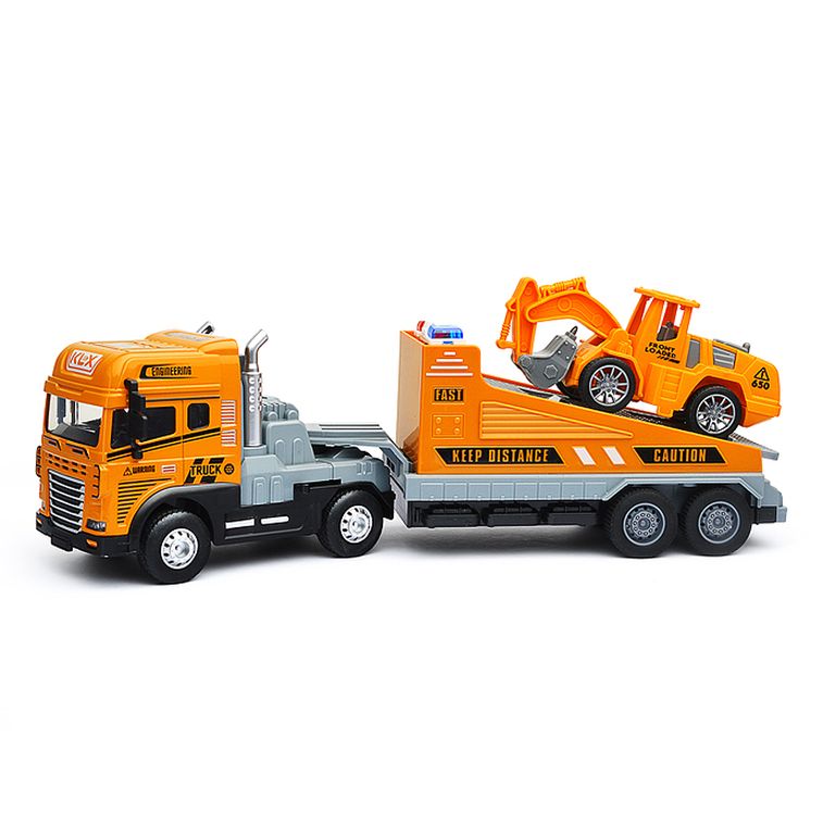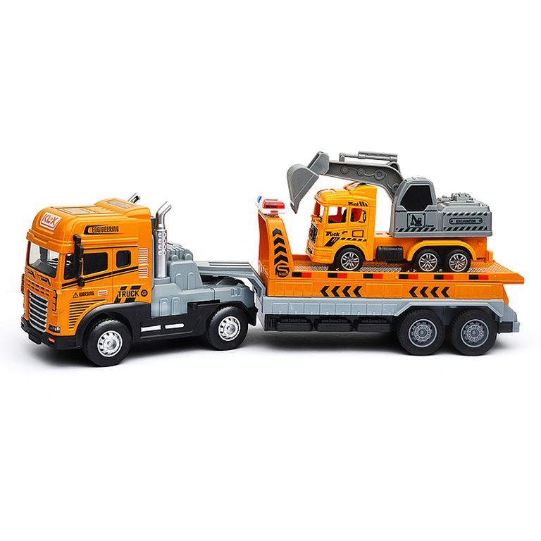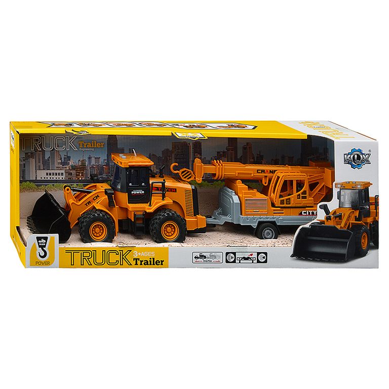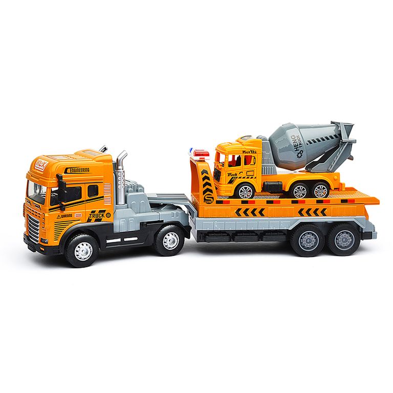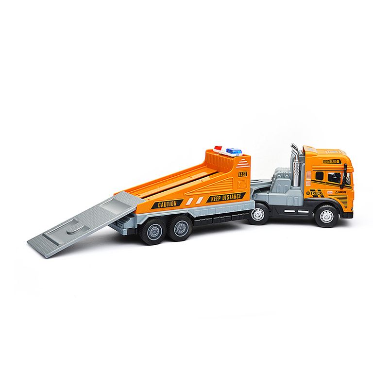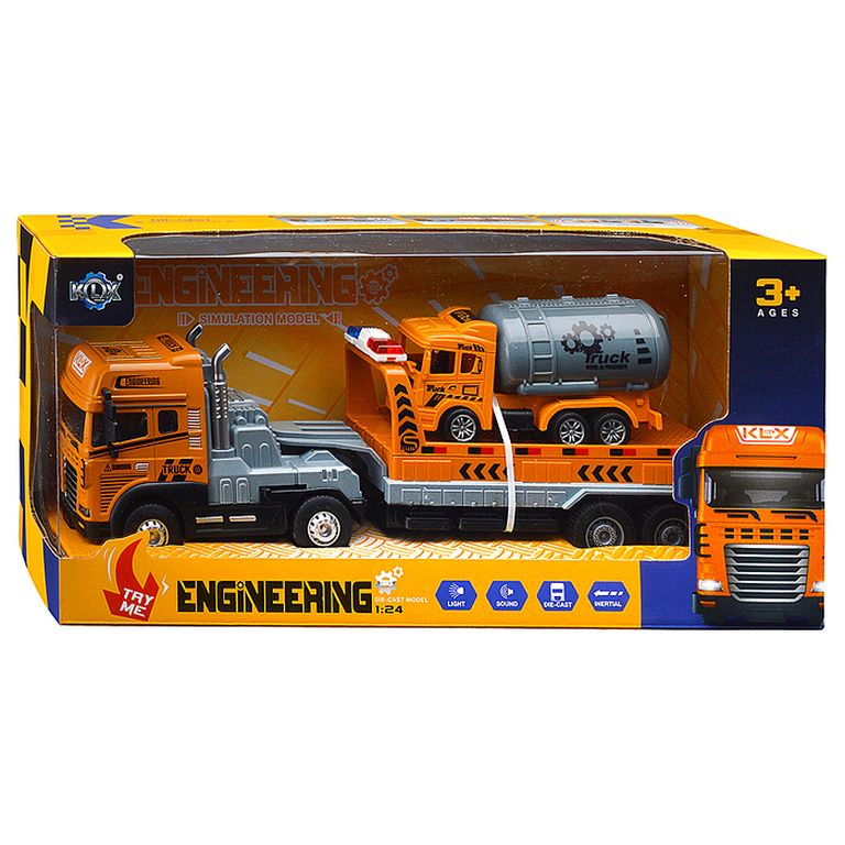Машина Тягач с прицепом и прожекторами на манипуляторе, свет, звук, в коробке 10х33х13 см KLX800-277