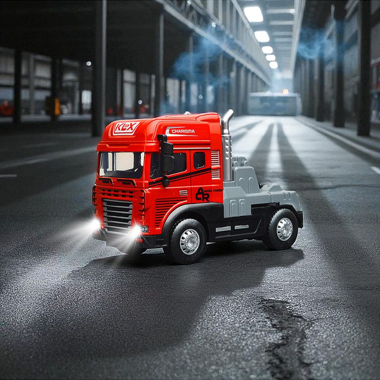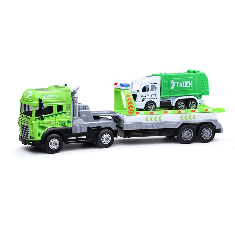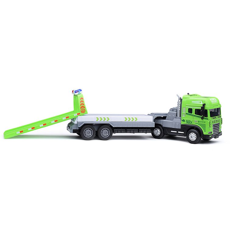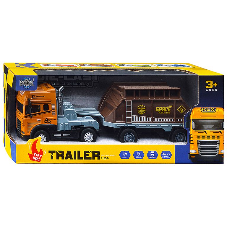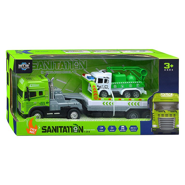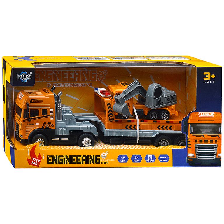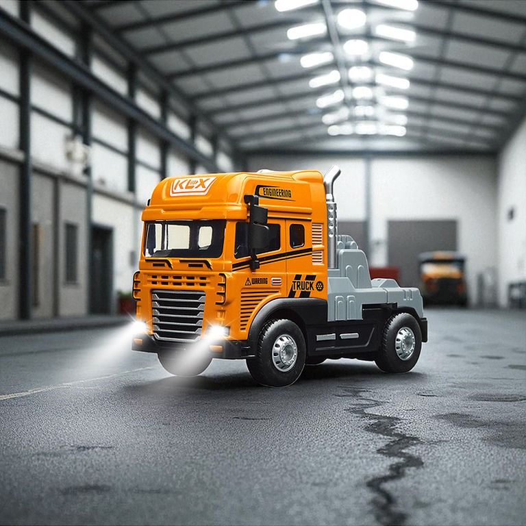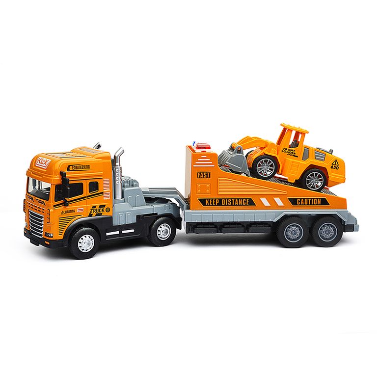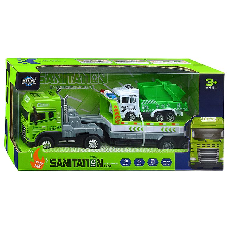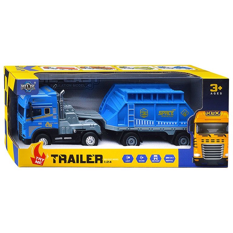 Машина Тягач с прицепом и прожекторами на манипуляторе, свет, звук, в коробке 10х33х13 см KLX800-277