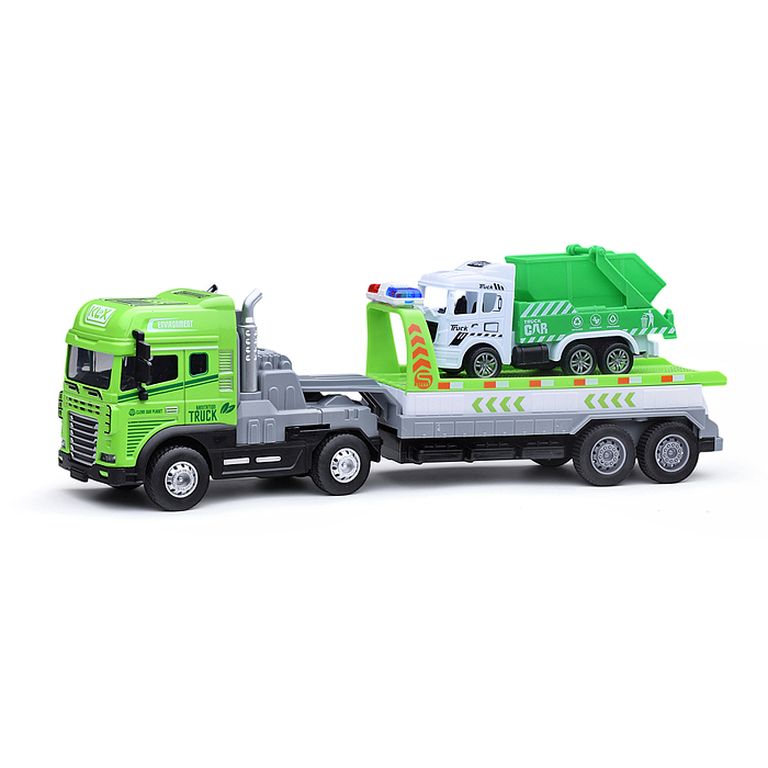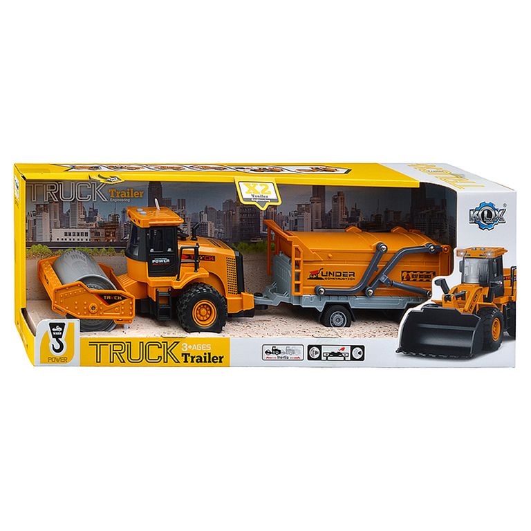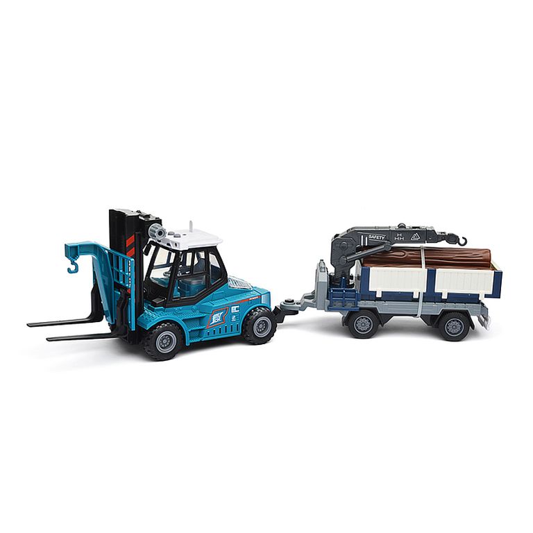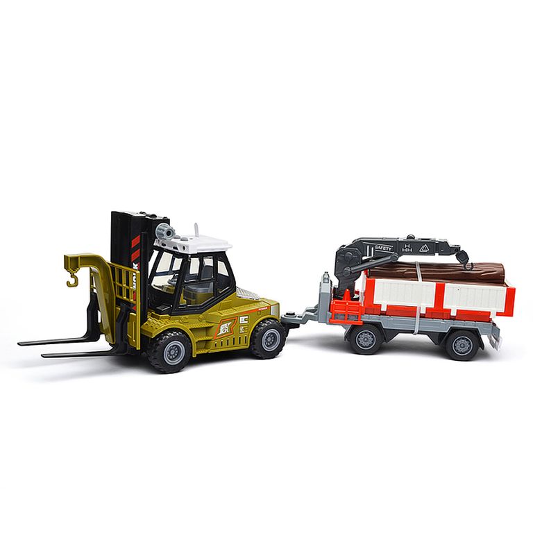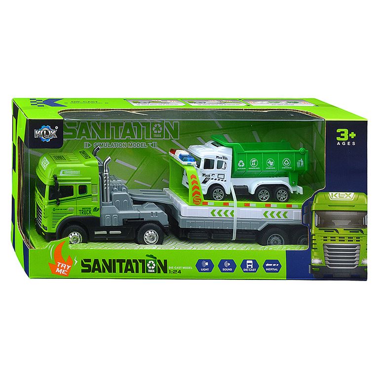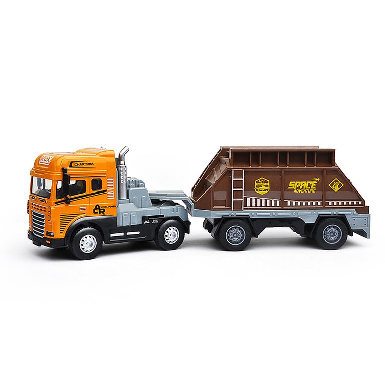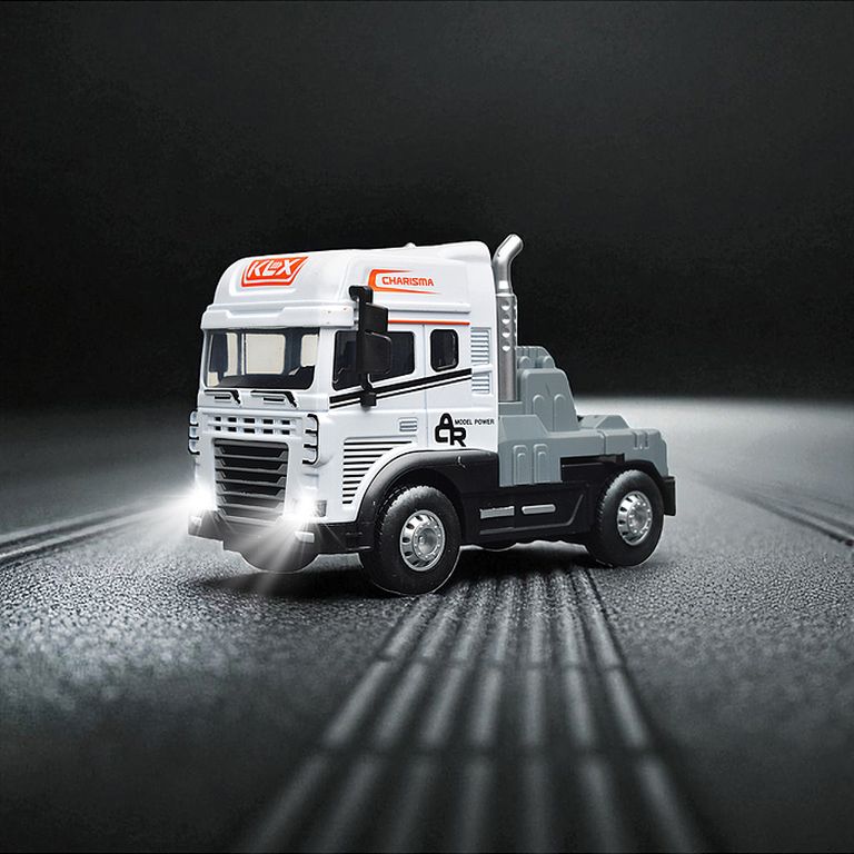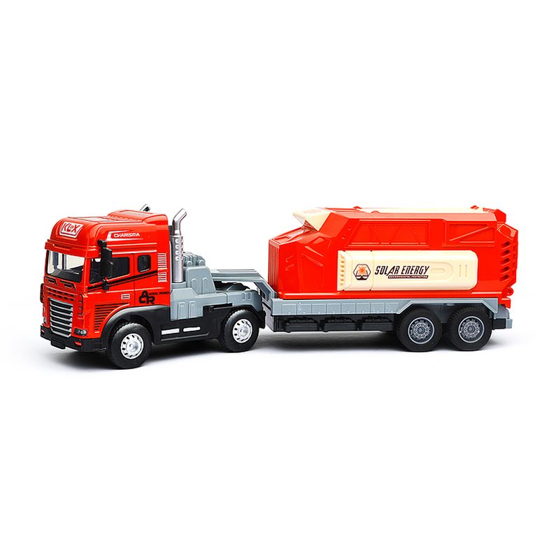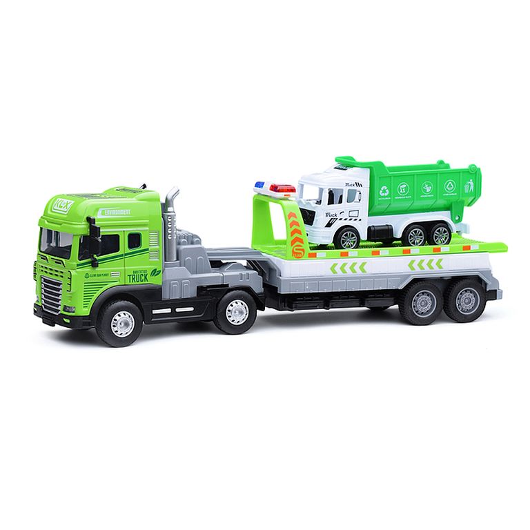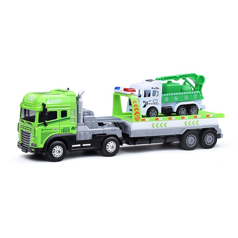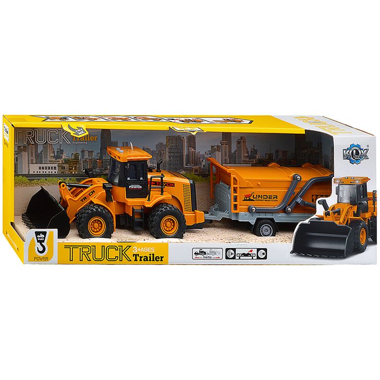 Машина Тягач с прицепом и прожекторами на манипуляторе, свет, звук, в коробке 10х33х13 см KLX800-277