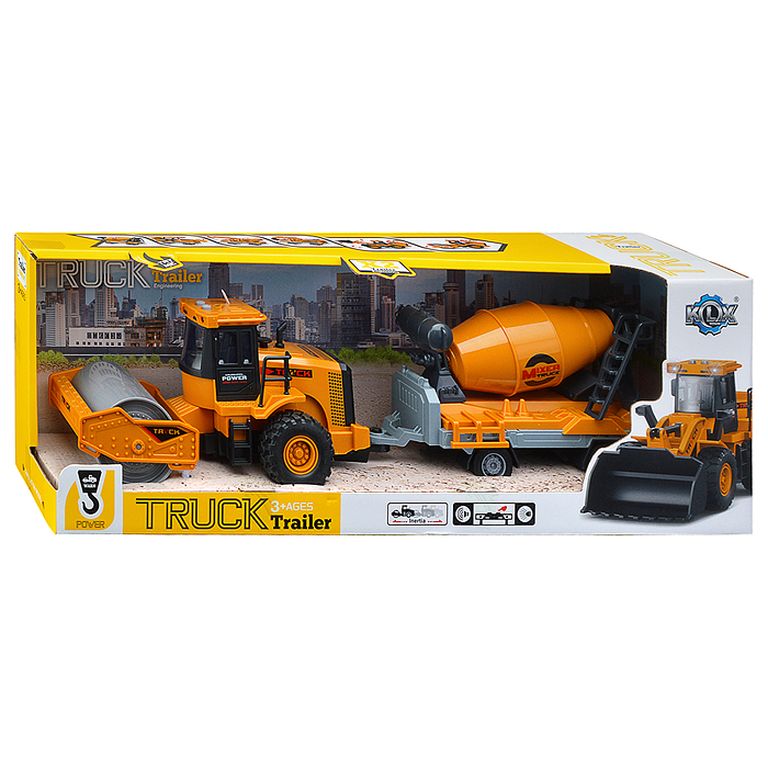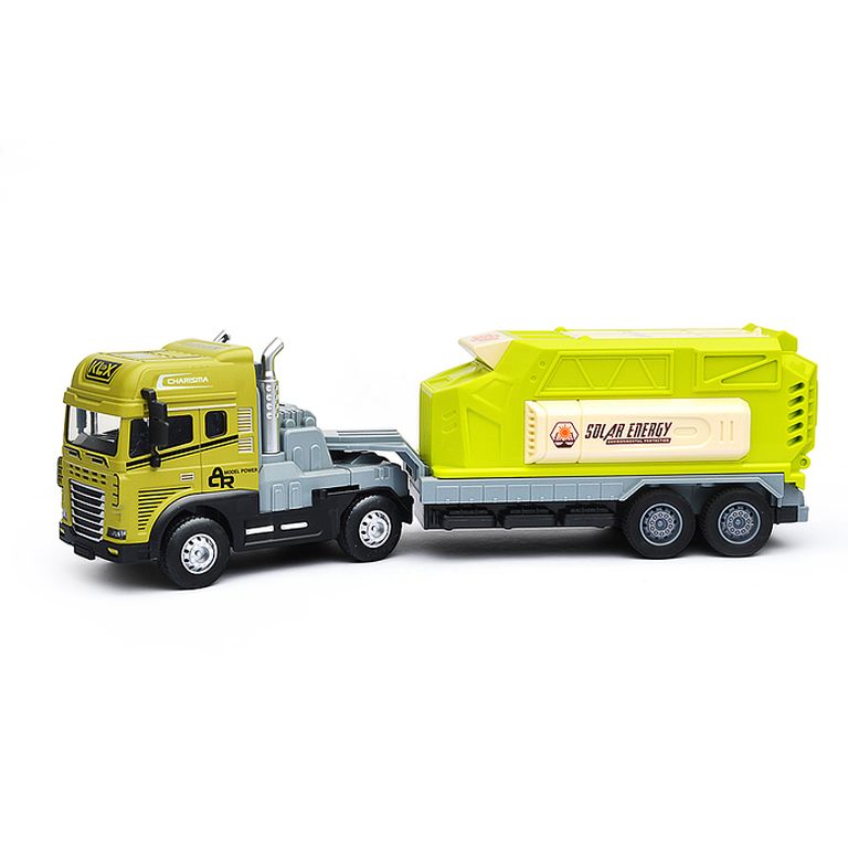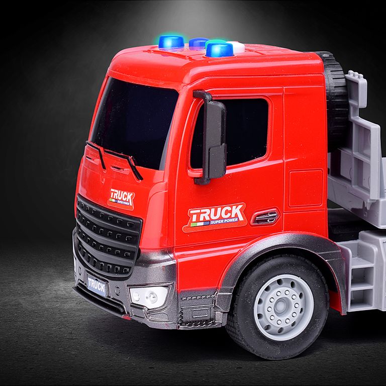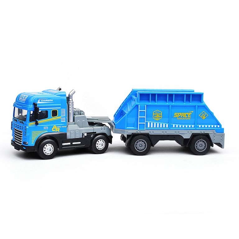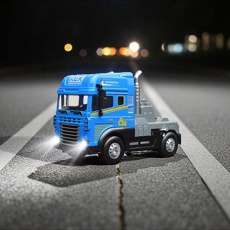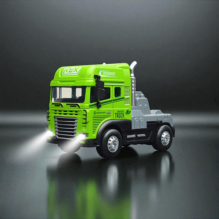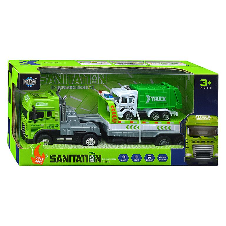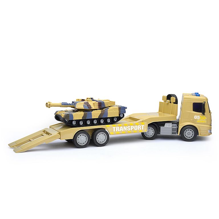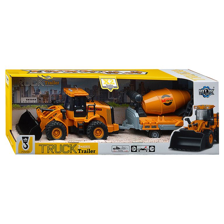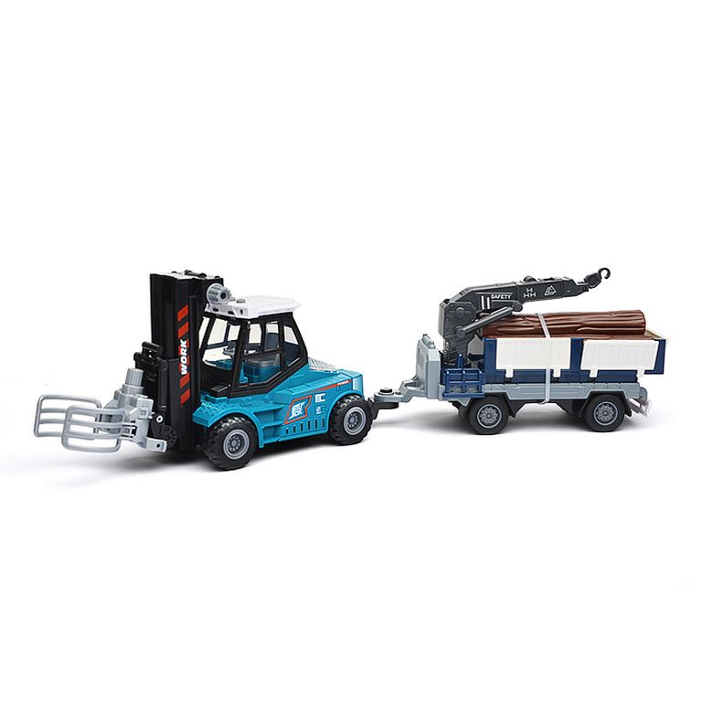 Машина Тягач с прицепом и прожекторами на манипуляторе, свет, звук, в коробке 10х33х13 см KLX800-277