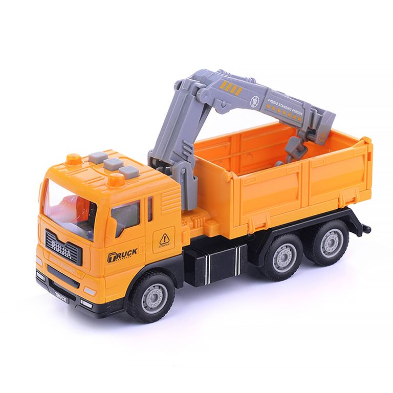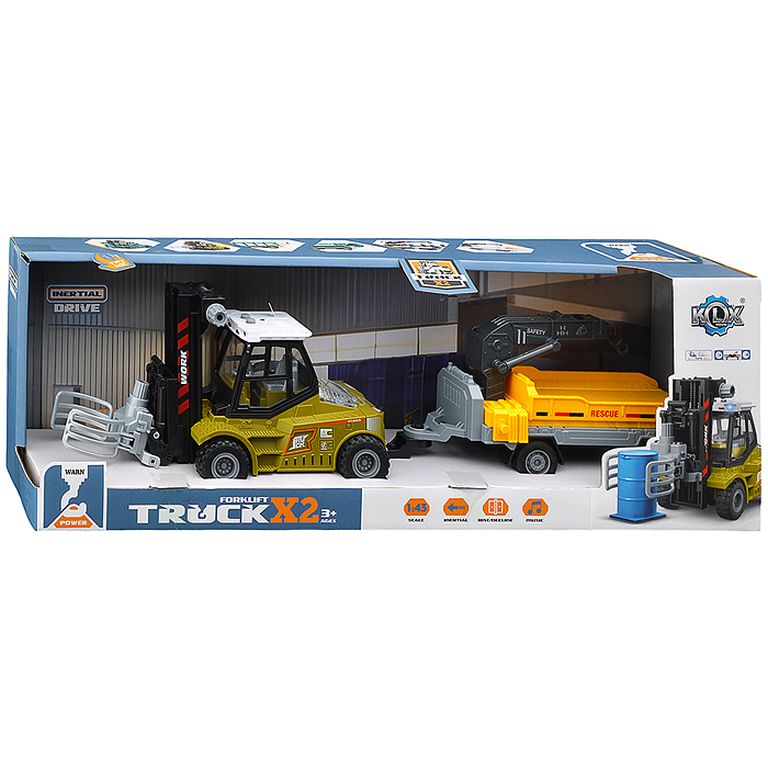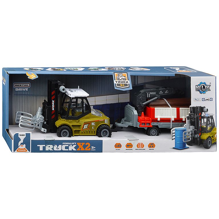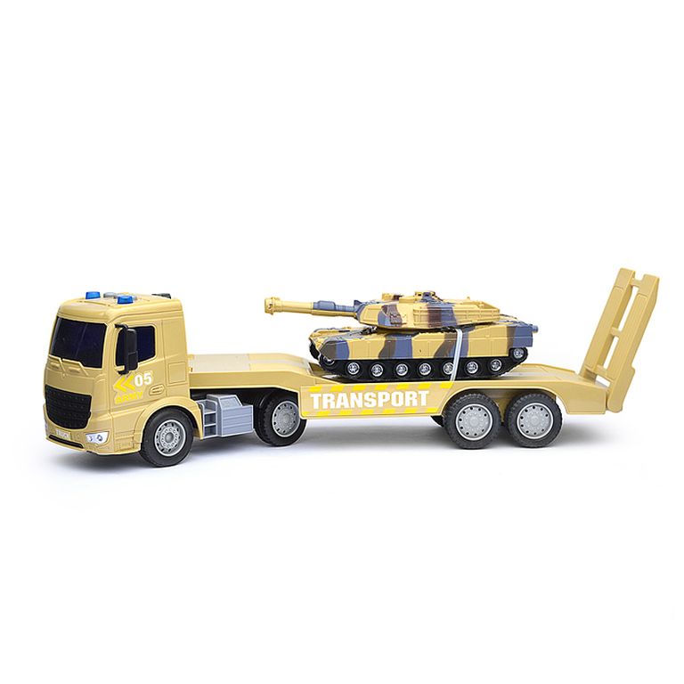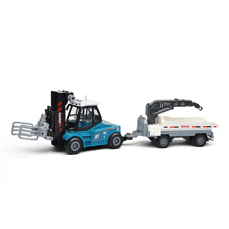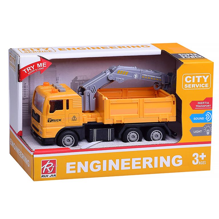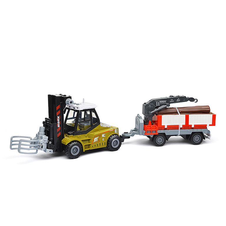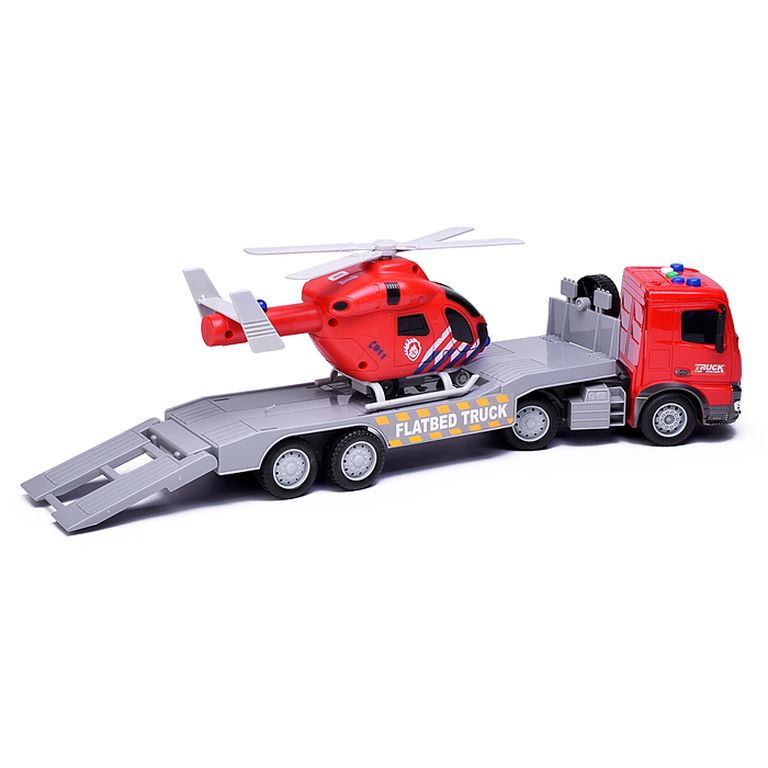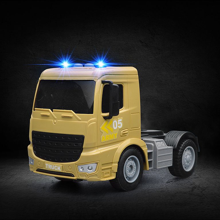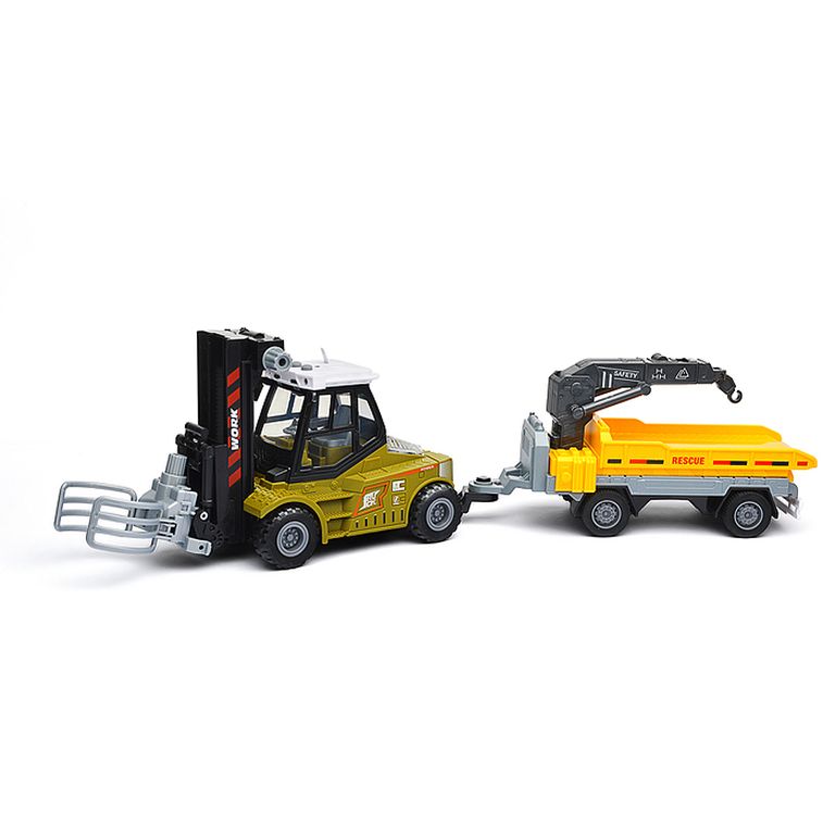 Машина Тягач с прицепом и прожекторами на манипуляторе, свет, звук, в коробке 10х33х13 см KLX800-277