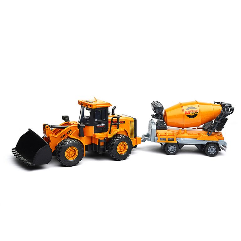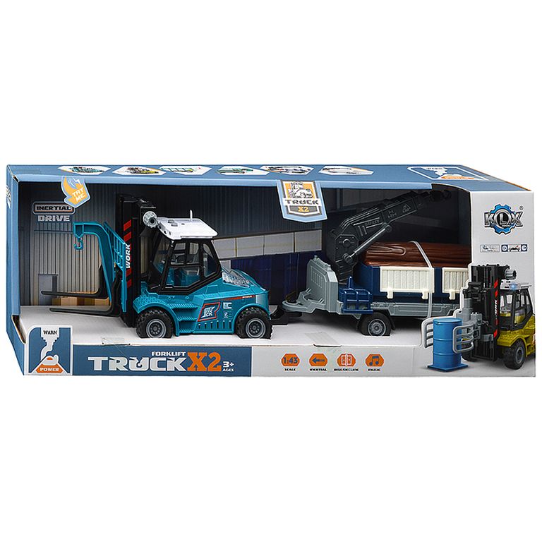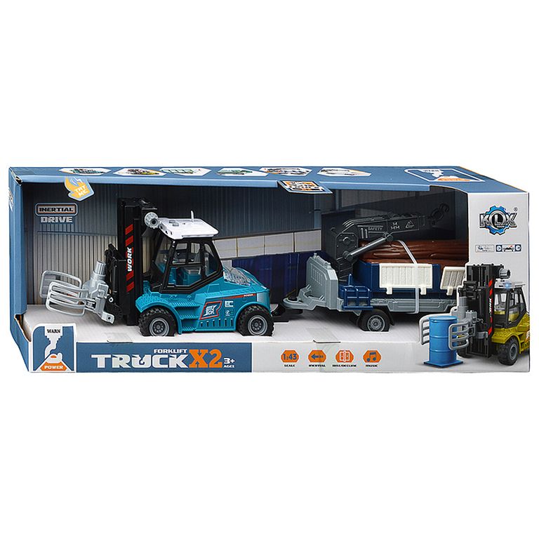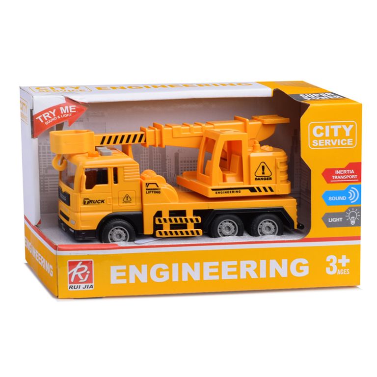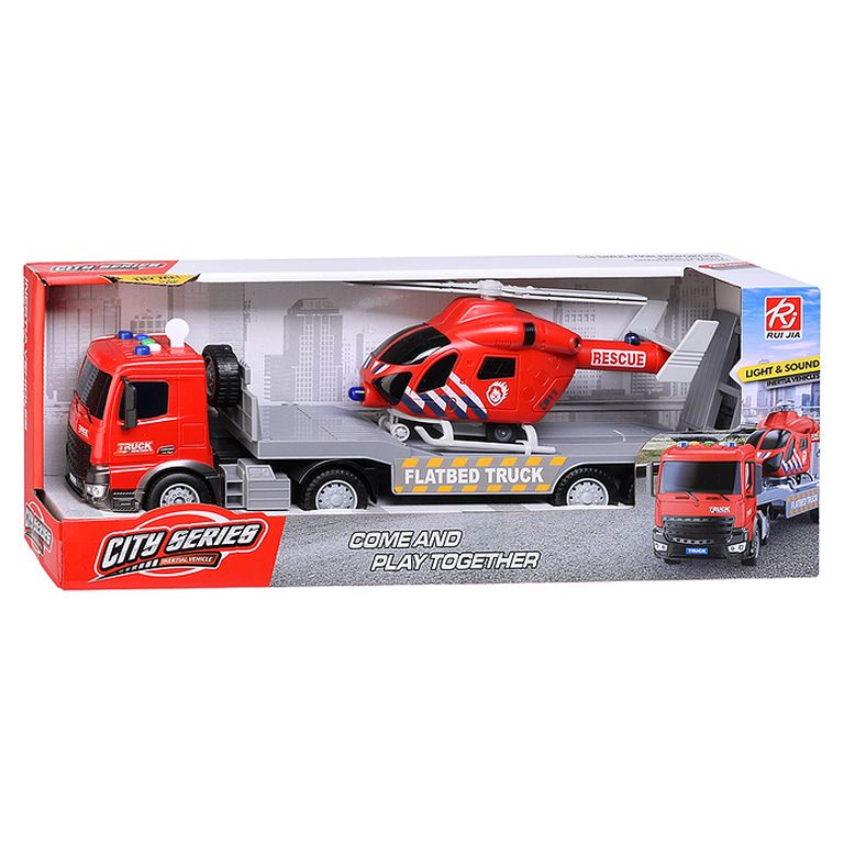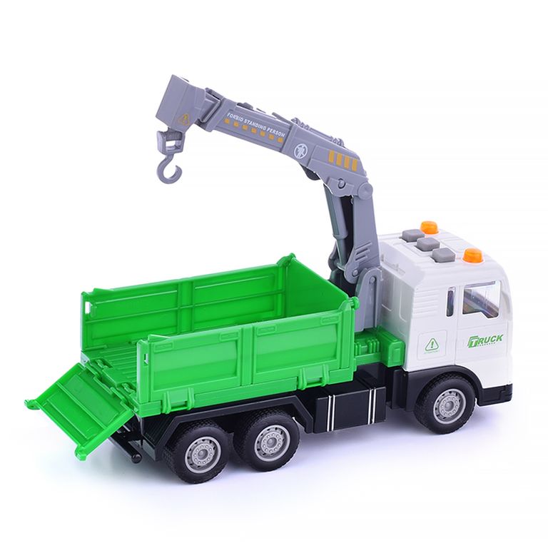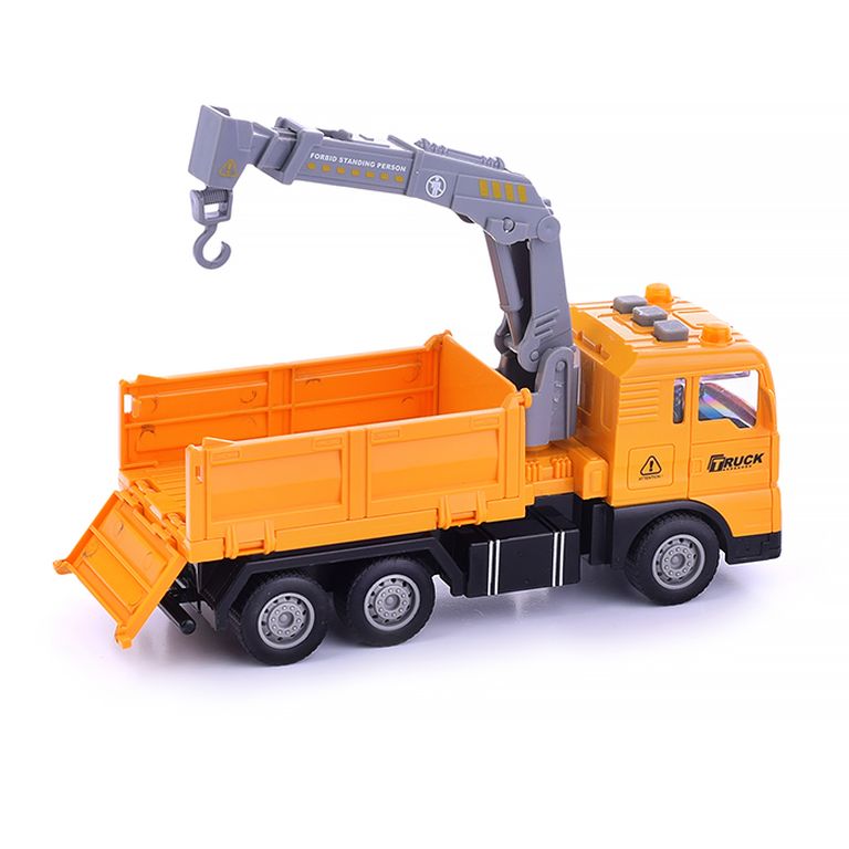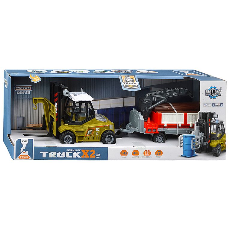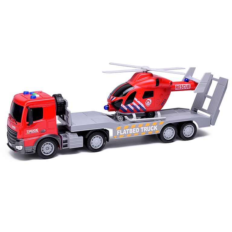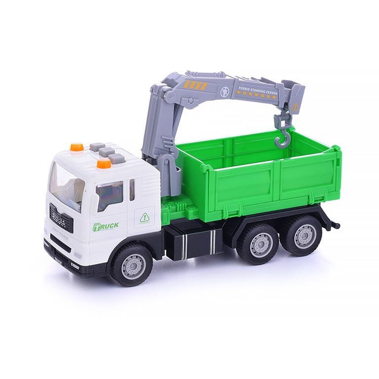 Машина Тягач с прицепом и прожекторами на манипуляторе, свет, звук, в коробке 10х33х13 см KLX800-277
