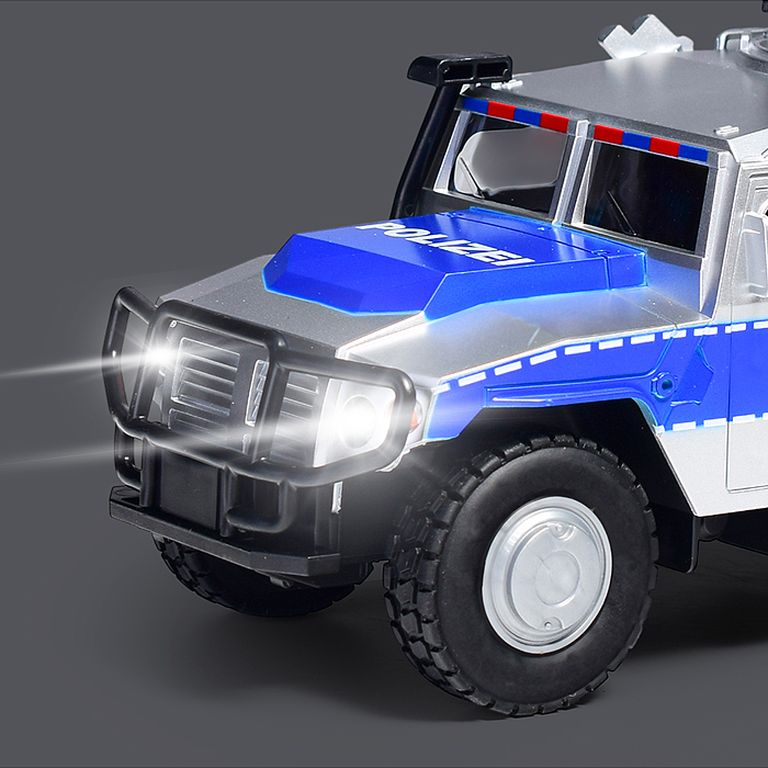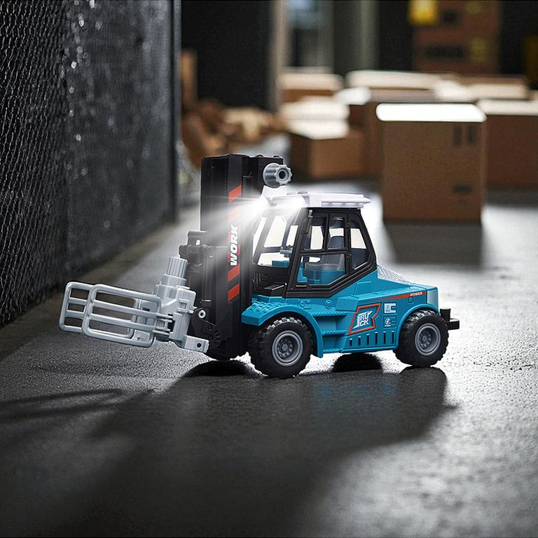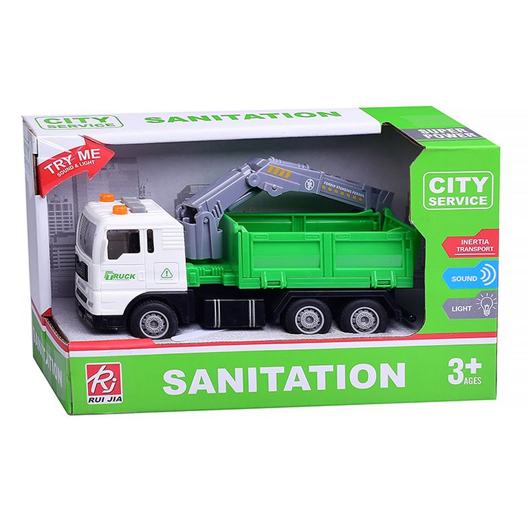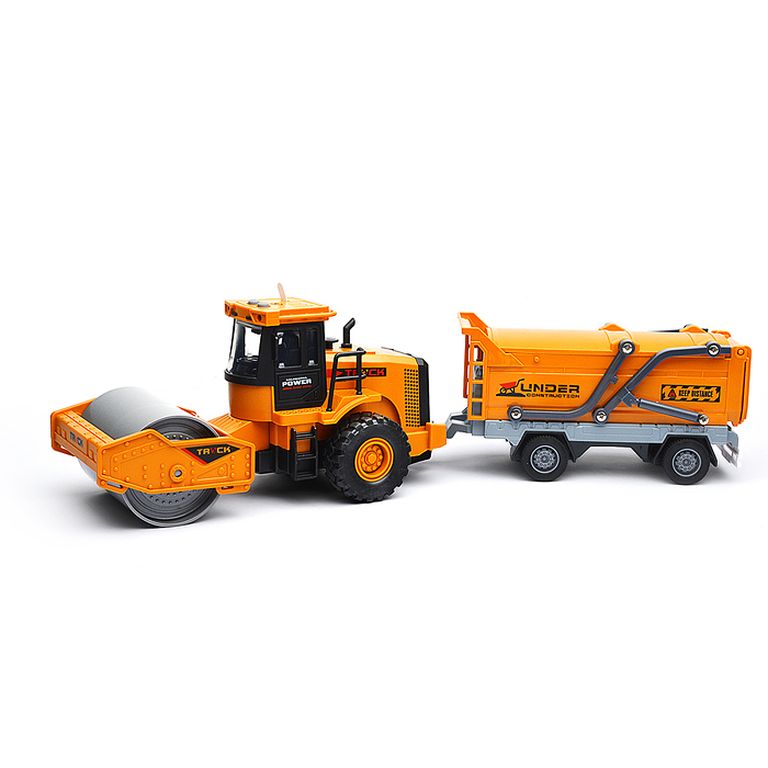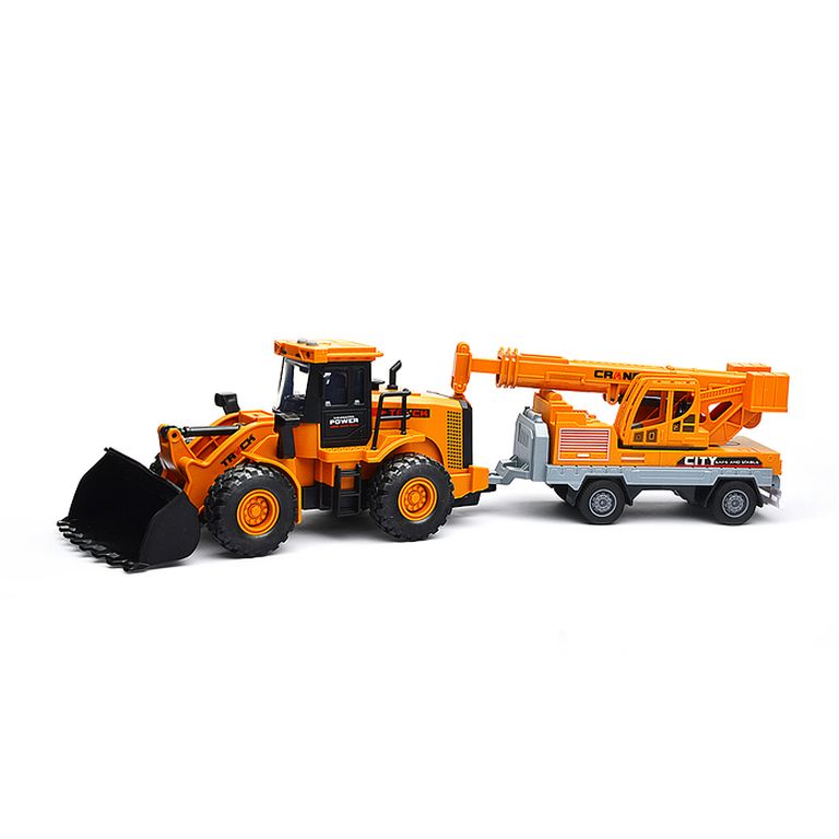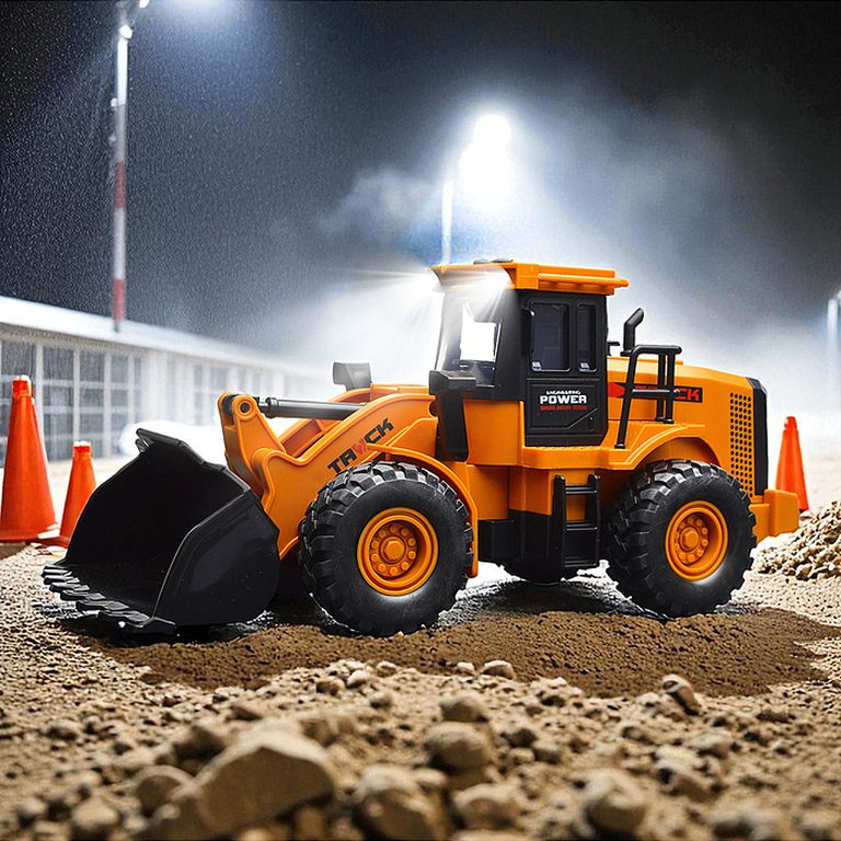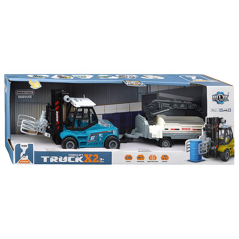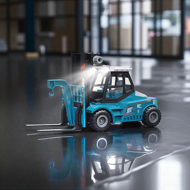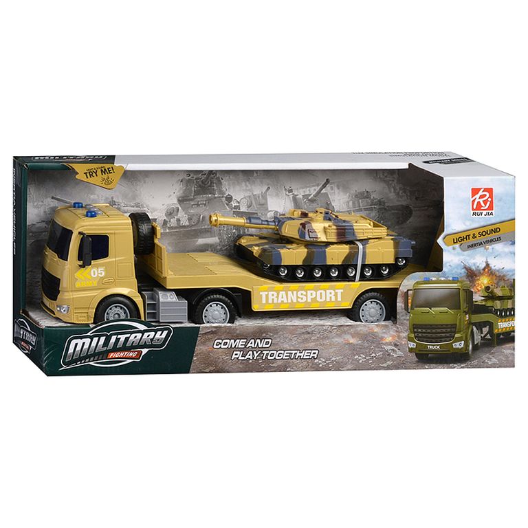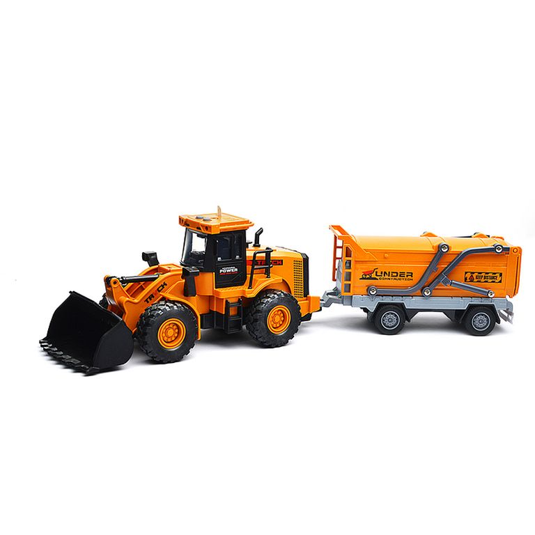 Машина Тягач с прицепом и прожекторами на манипуляторе, свет, звук, в коробке 10х33х13 см KLX800-277